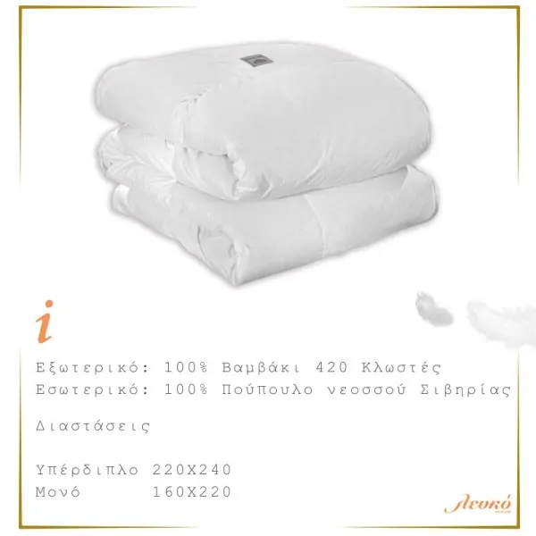 Εσωτερικό: 100% Πούπουλο νεοσσού χήνας Σιβηρίας