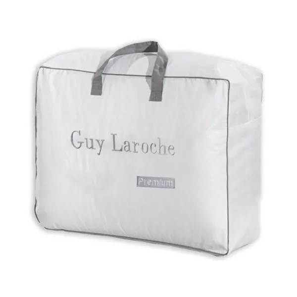 Ένα λευκό πουπουλένιο πάπλωμα μεγάλης θερμομόνωσης από την ποιοτική εταιρεία Guy Laroche. Τα φυσικά πούπουλά του από νεοσσό χήνας Σιβηρίας και το βαμβάκι percale που το αγκαλιάζει εξωτερικά το καθιστούν μία απόλυτα φυσική λύση για ζεστό ύπνο.