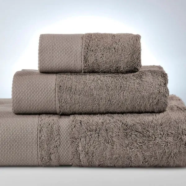 Σετ πολυτελείς πετσέτες από 70% Bamboo και 30% Βαμβάκι. Η σειρά New Rosa της ελληνικής εταιρείας Down Town διακρίνεται από την ποιότητα των νήματα, την απορροφητικότητα και την απαλότητά τους. Η σύνθεση της, την κάνει ανθεκτική στη συχνή χρήση, με το χρώμα της να παραμένει αναλλοίωτο. Στο ίδιο σχέδιο είναι διαθέσιμες πετσέτα χεριών, προσώπου, και μπάνιου. Αποτελεί μια διαχρονική και ιδανική επιλογή μονόχρωμης πετσέτας με διακριτικό ανάγλυφο σχέδιο στο τελείωμα.