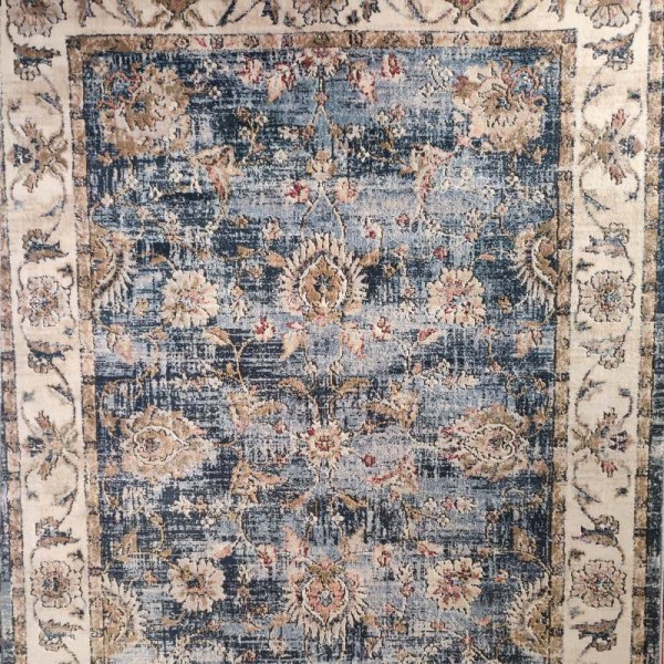 Χαλί ΣΤΟΚ τελευταίο τεμάχιο με αποχρώσεις ανοικτού μπλε, και κρεμ. Πολυτελές συνθετικό χαλί μηχανής, της σειράς Sonata της Atlantis carpets με κλασικό σχέδιο και διαχρονική αισθητική, αλλά μοντέρνες ιδιότητες. Πιστοποιημένο με Oeko Tex, αντιστατικό, εύκολο στο καθάρισμα.