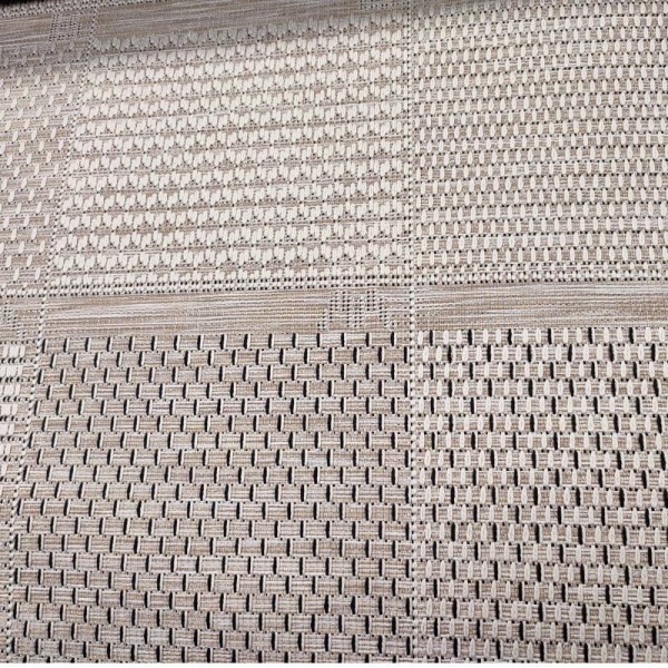 Καλοκαιρινό χαλί συνθετικό με ψάθινη πλέξη στις αποχρώσεις του μπεζ με μαύρες και λευκές λεπτομέρειες που σχηματίζονται μεγάλα τετράγωνα, για μπόχο διακόσμηση, χωρίς κρόσια. Τα συνθετικά ψάθινα χαλιά ταιριάζουν σε όλα τα δωμάτια, μπορούν να χρησιμοποιηθούν στις κουζίνες και στις τραπεζαρίες, είναι εύκολα στο καθάρισμα και αποκαλούνται συνήθως χαλιά 4 εποχών. Διάστασης 160Χ230cm, μόνο με 48 ευρώ!