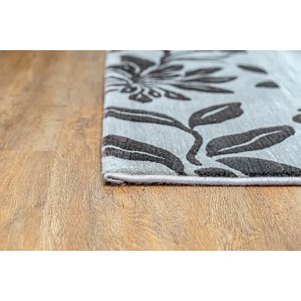 Μοντέρνο χαλί ΣΤΟΚ, τελευταίο τεμάχιο της συλλογής μας σε προσφορά με χρώμα: γκρι με μαύρα νευρά και περιμετρικό σχέδιο μαύρο φλοράλ. Κατασκευαστής: Mancini