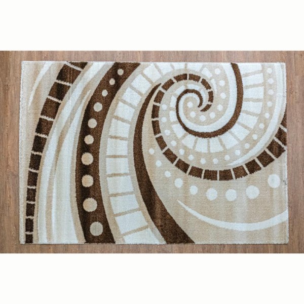 Χαλί ΣΤΟΚ τελευταίο τεμάχιο με αποχρώσεις ανοικτού μπεζ, βανίλια και καφέ με γεωμετρικό σχέδιο σπιράλ. Μοντέρνο συνθετικό χαλί μηχανής από τη σειρά Senta, ελεγμένο για επιβλαβείς ουσίες, φιλικό προς το περιβάλλον, με πιστοποιήση OEKO - Tex Standard 100. Eίναι οικολογικό προϊόν, αντιστατικό, υποαλλεργικό, αντιμικροβιακό, εύκολο στο καθάρισμα χωρίς να αφήνει χνούδια και τρίχες, με αντίσταση στους λεκέδες.