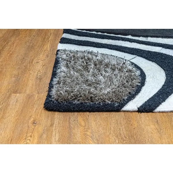 Χειροποίητο χαλί από μετάξι και μαλλί από τη συλλογή Makis Tselios για να διακοσμήσει ιδανικά το σαλόνι ή και την κρεβατοκάμαρα. Με ζεστές αποχρώσεις όπως μαύρο φόντο με τρία οβάλ ανομοιόμορφα σχέδια γκρι και λευκό. Μοναδικό τεμάχιο ΣΤΟΚ χαλί διαστάσεων 160Χ230cm με επωνυμία MAKIS TSELIOS.