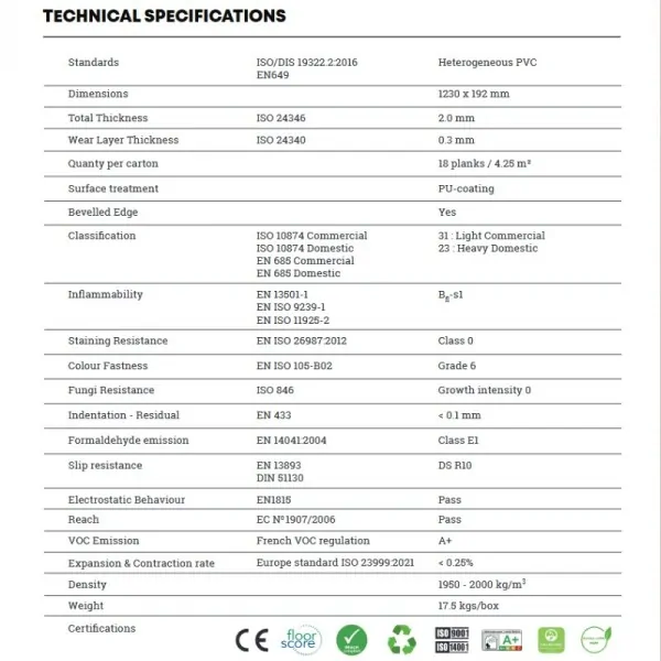 - ΣΥΝΘΕΣΗ: PVC Βινυλικό δάπεδο με στρώση PUR