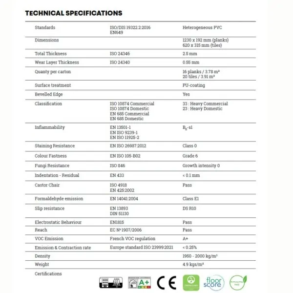ΠΙΣΤΟΠΟΙΗΣΗ: Floor score A+ , 100% Waterproof core, PHthalates Free, GreenGuard